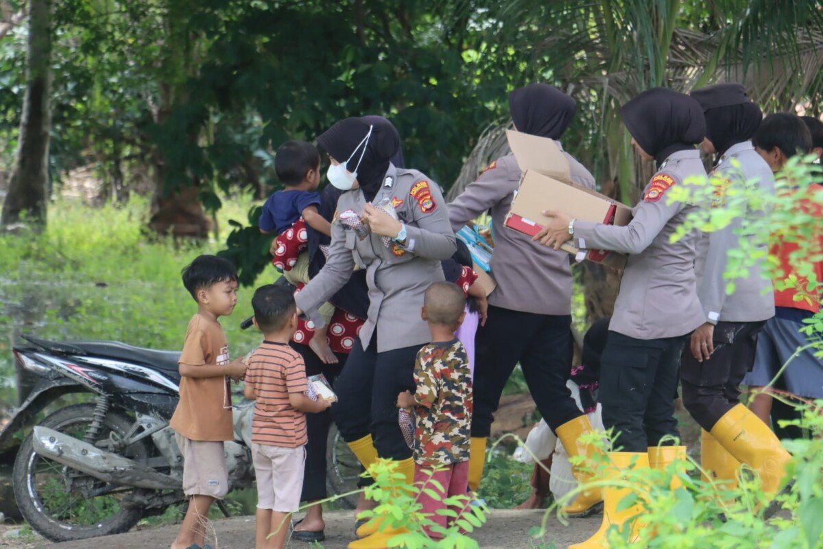 Polwan Lampung Selatan Berbagi Keceriaan dengan Anak-Anak di Pengungsian Banjir
