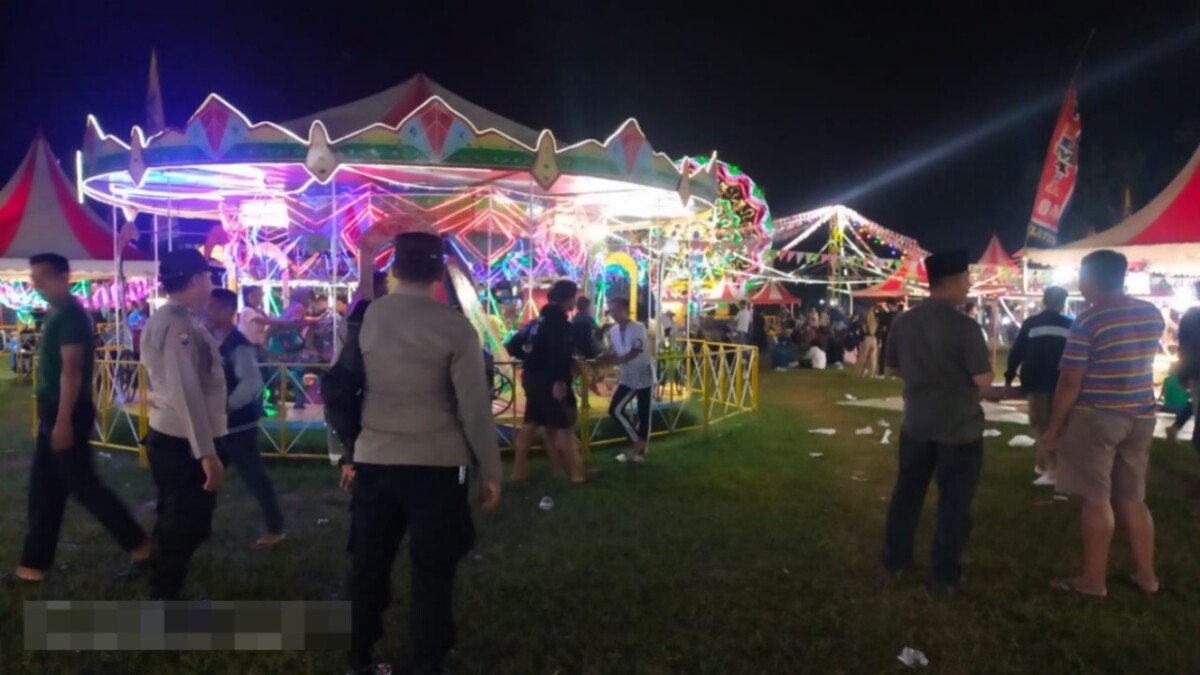 Kegiatan patroli KRYD dengan keliling berjalan kaki dipimpin oleh Aipda M. Sobri bersama personel Polsek Way Tuba berlangsung di lokasi pasar malam Lapangan sepak bola Kampung Way Pisang Kecamatan Way Tuba, Kabupaten Way Kanan.